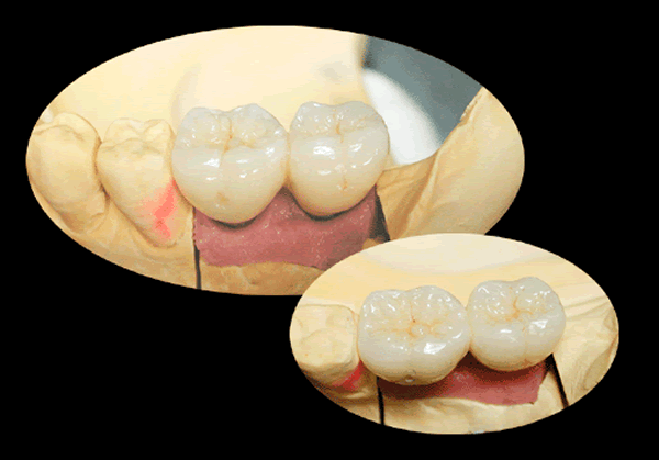 ◎ITI-インプラント上に製作されたAGCガルバーノ・キャップ(写真上:提供;大信貿易) |
